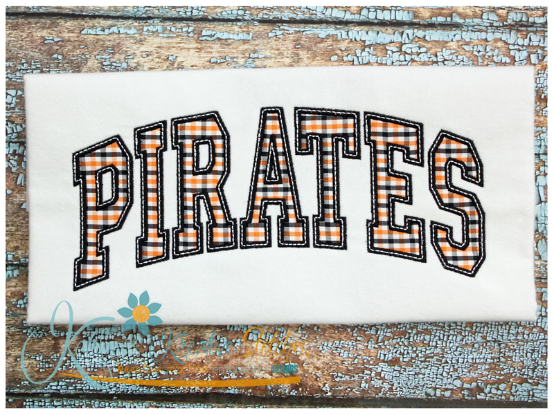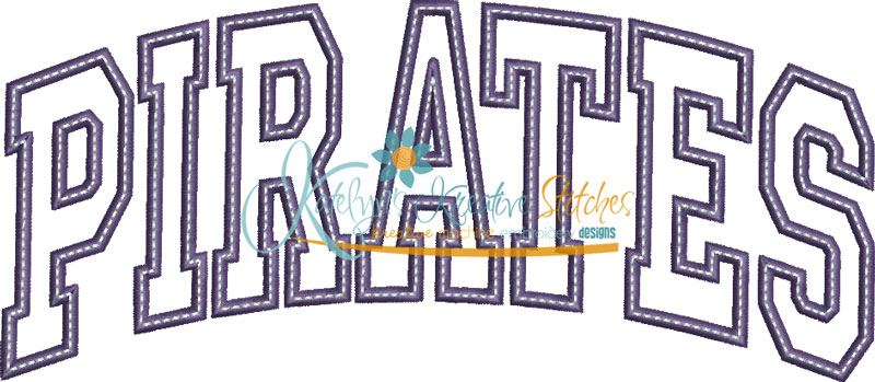 Our Arched Mascot designs will come in 5 sizes. The 5x7, 6x10, 8x12 and 8x14 will be applique. The smaller 4x4 size will be in a satin stitch. These will be great for school sweatshirts and tees. The 4x4 size will be perfect for polo's too.