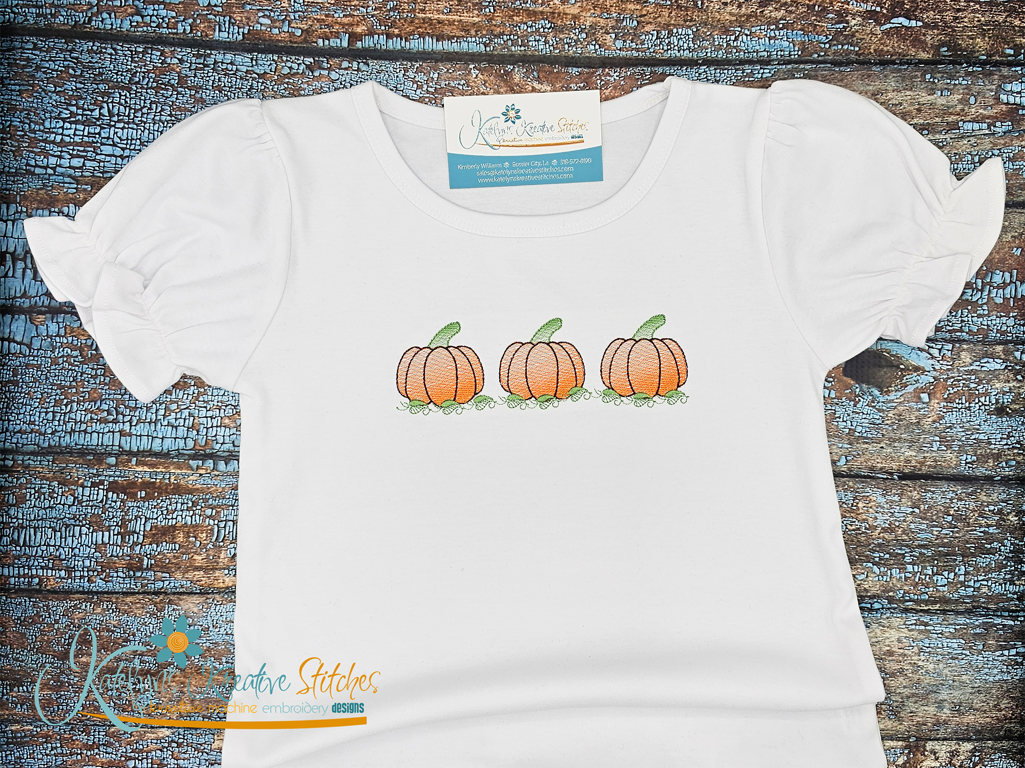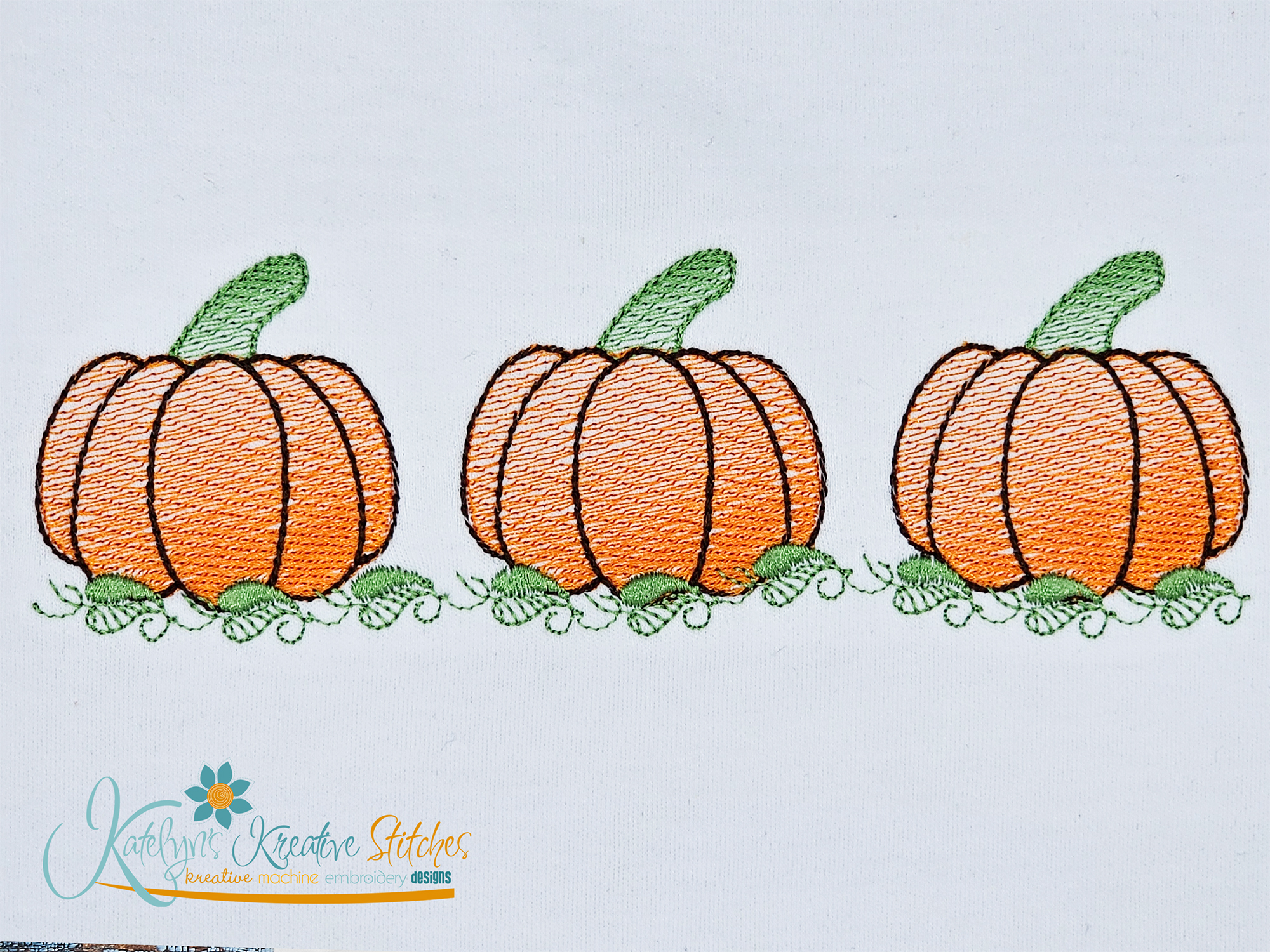 This Pumpkin Sketch Trio embroidery design is the perfect accent to use in your home decor or embroidery projects for Fall. This design is offered in 5 sizes.  It will fit the 5x7, 6x10, 8x8, 8x12 or 8x14 hoops.