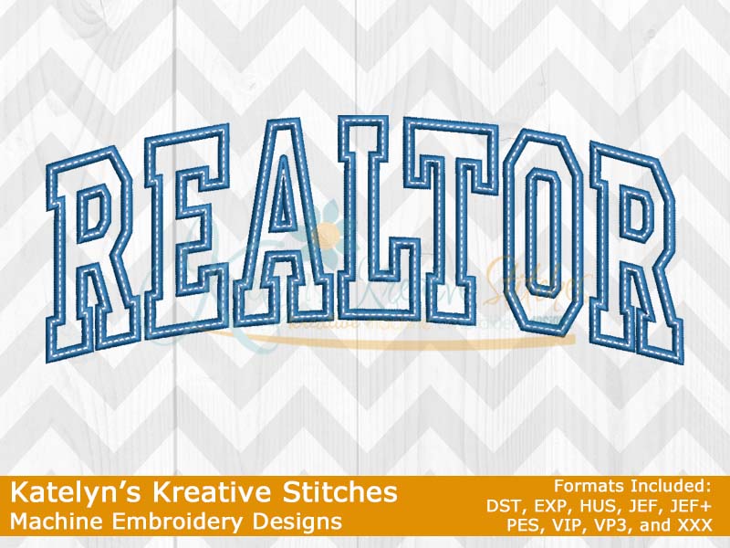 Our Arched designs will come in 5 sizes. The 5x7, 6x10, 8x12 and 8x14 will be applique. The smaller 4x4 size will be in a satin stitch. These will be great for sweatshirts and tees. The 4x4 size will be perfect for polo's too.