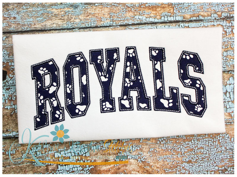 Our Arched Mascot designs will come in 5 sizes. The 5x7, 6x10, 8x12 and 8x14 will be applique. The smaller 4x4 size will be in a satin stitch. These will be great for school sweatshirts and tees. The 4x4 size will be perfect for polo's too.