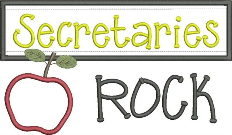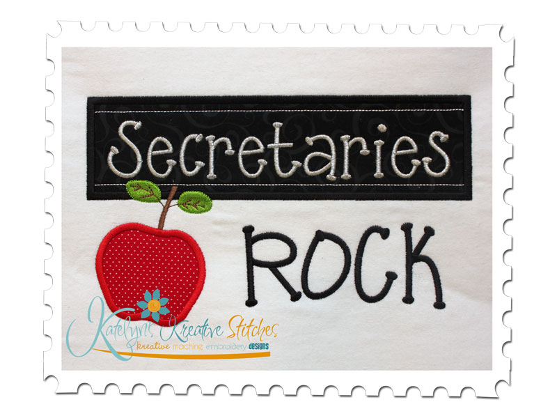 Our "Secretaries Rock" and Chalkboard Applique is perfect for Back to School. It's not just for kids either. I can see Tees and Totes galore. This applique design will fit hoop sizes 4x4, 5x7 and 6x10.