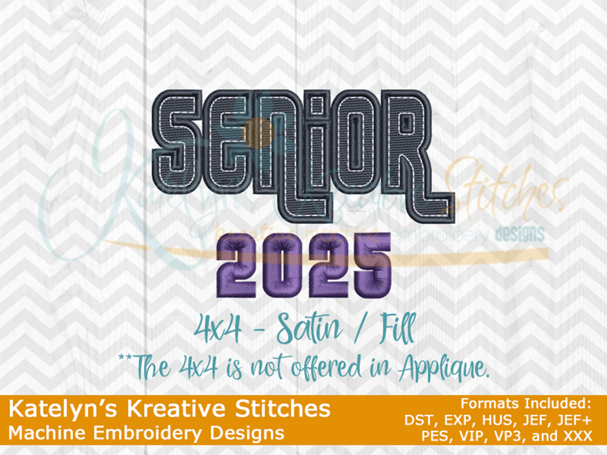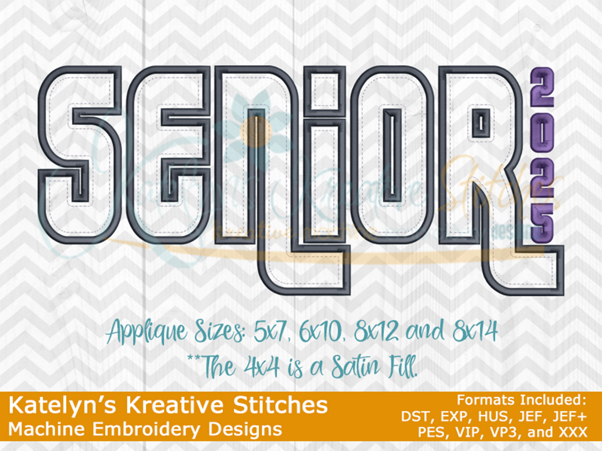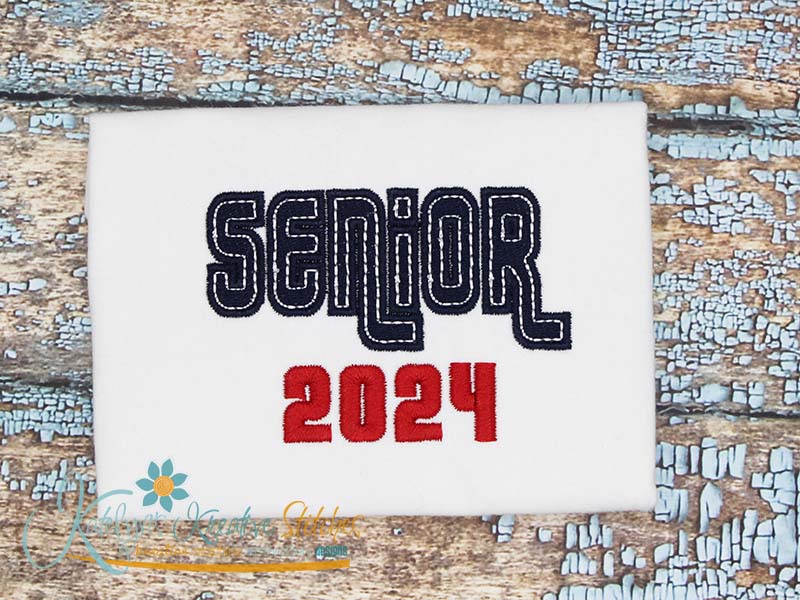 Our Senior 2025 design will come in 5 sizes. The 5x7, 6x10, 8x12 and 8x14 will be applique. The smaller 4x4 size will be in a fill stitch. These will be great for school sweatshirts and tees. The 4x4 size will be perfect for polo's too.