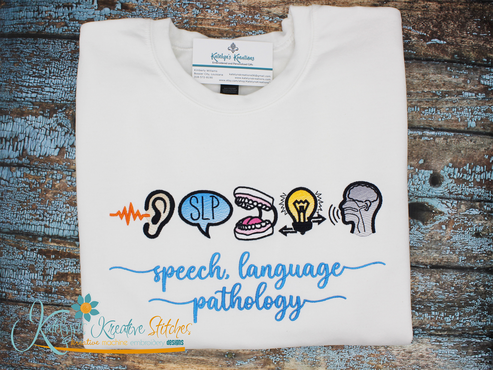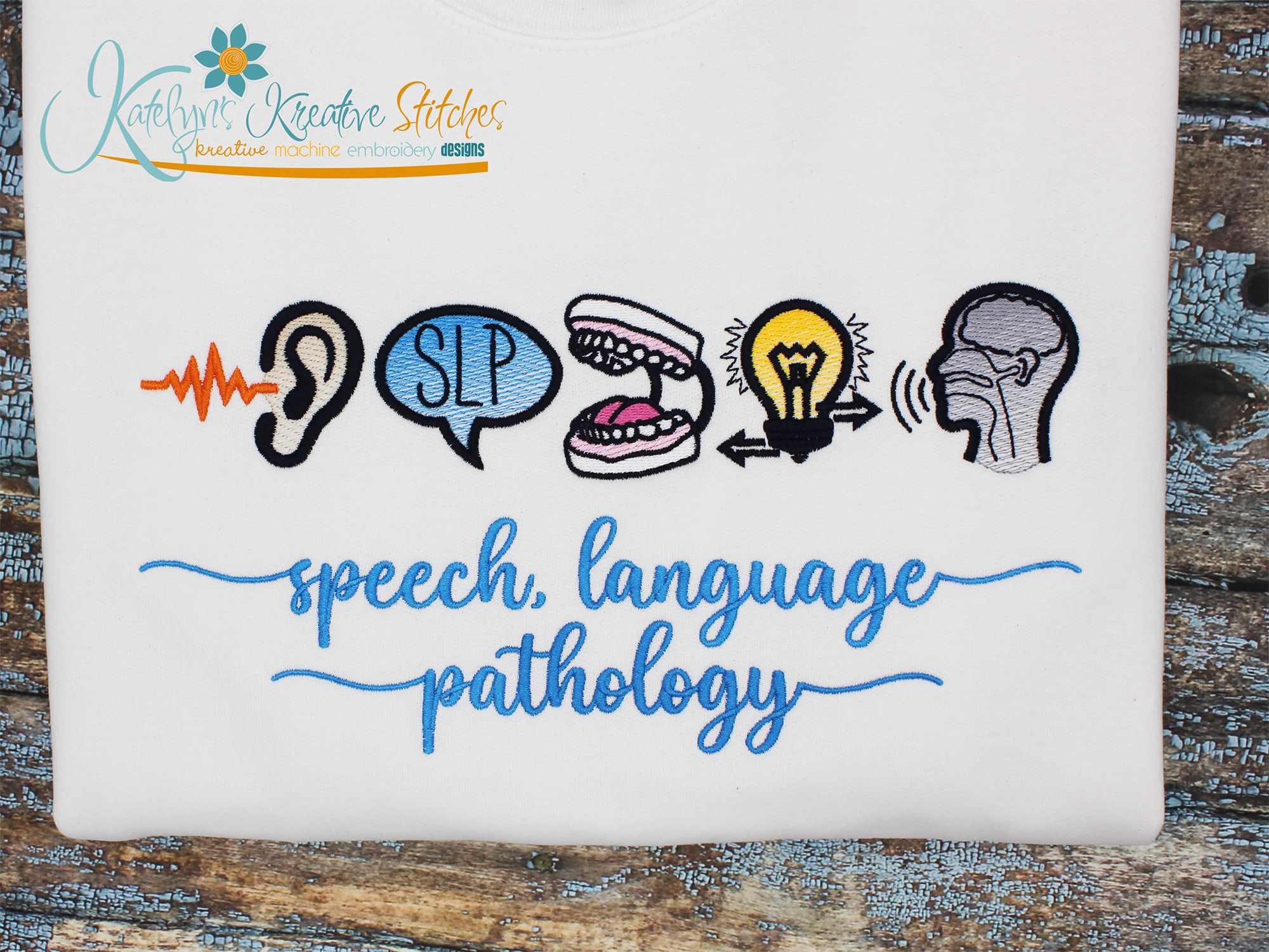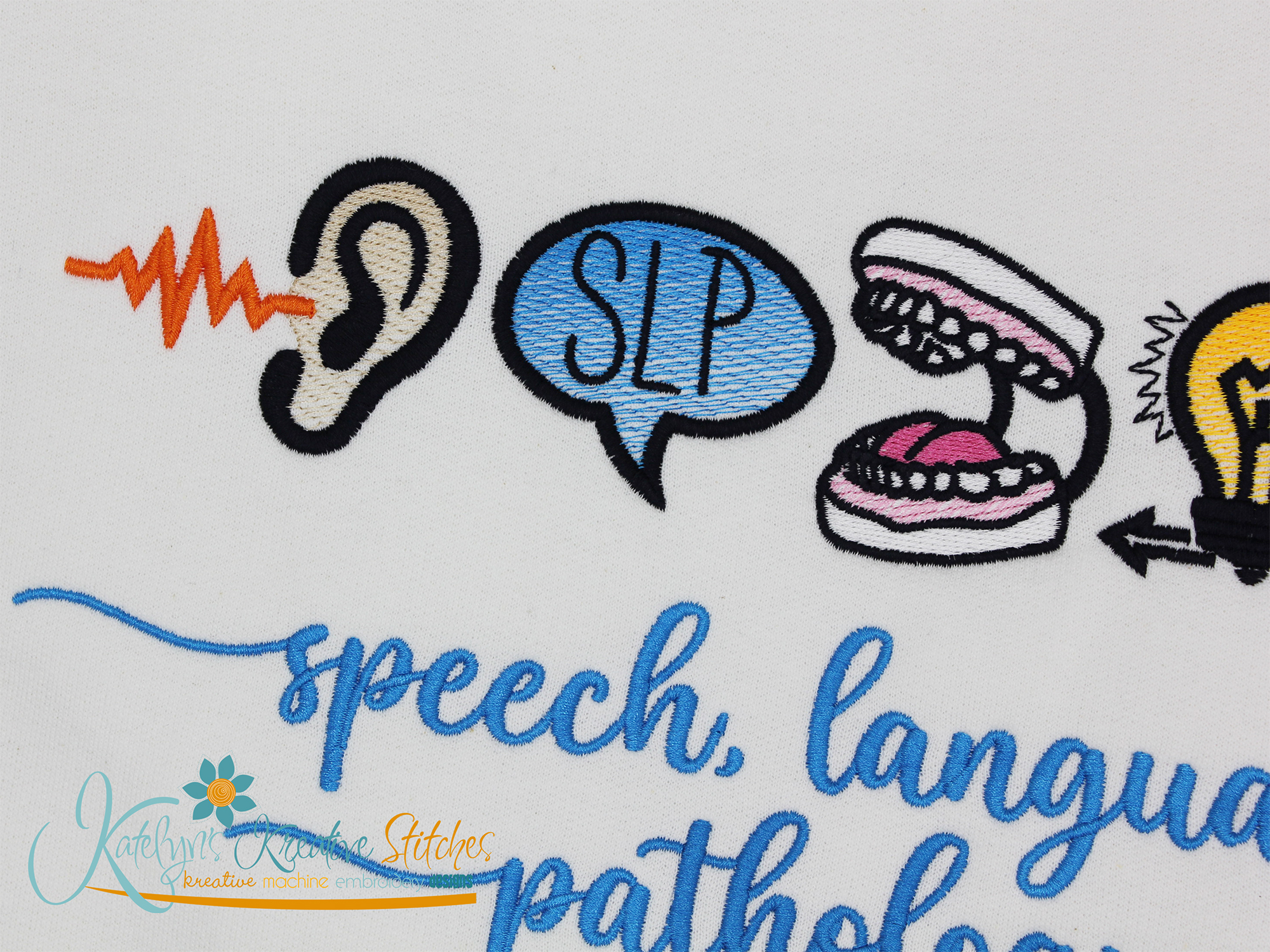 Speech, Language, Pathology Icon Embroidery - Filled and Outline Versions