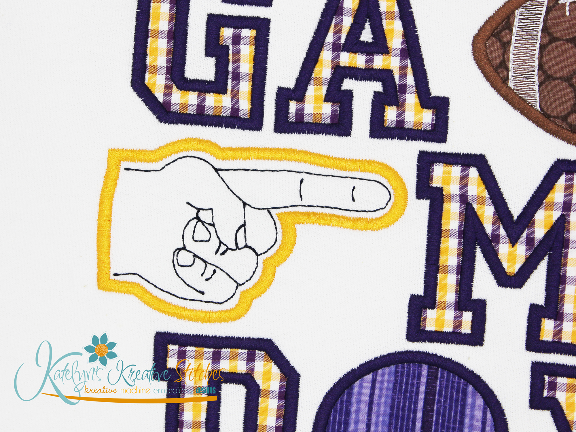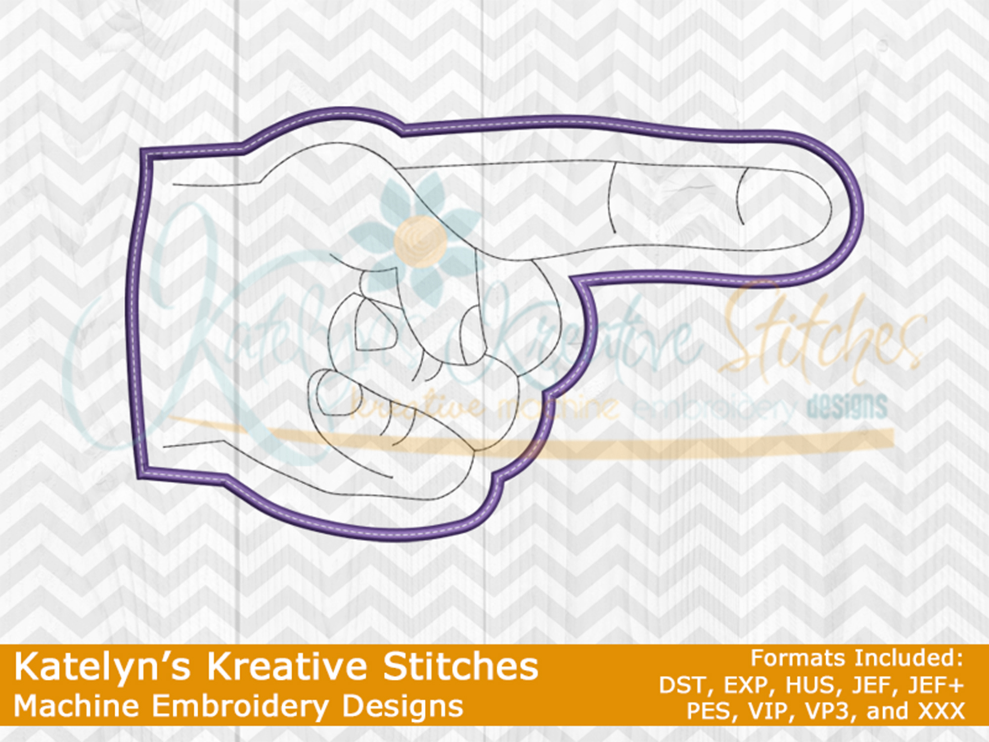 If you're a huge sports fan, then you'll need our Foam Finger applique to show off your Team Spirit. Perfect for any Tailgate Party! You can add your team name or number to it. This design will fit the 4x4, 5x7, 8x8, 6x10, 7x12 and 8x14 hoop sizes.