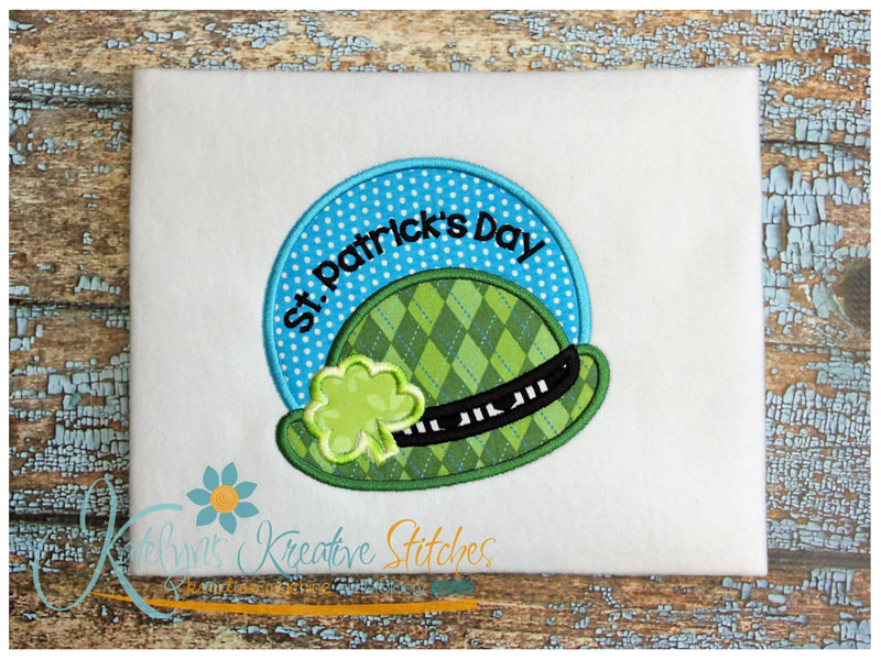 Our St. Patrick's Day Hat is a cute addition to your collection.  This design It will fit the 4x4, 5x7, 6x10 and 9x9 hoop sizes.