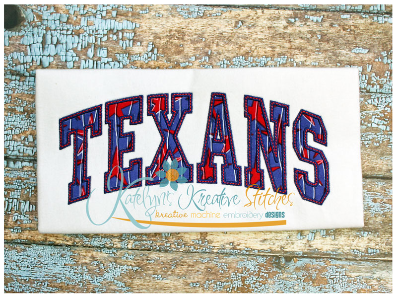 Our Arched Mascot designs will come in 5 sizes. The 5x7, 6x10, 8x12 and 8x14 will be applique. The smaller 4x4 size will be in a satin stitch. These will be great for school sweatshirts and tees. The 4x4 size will be perfect for polo's too.