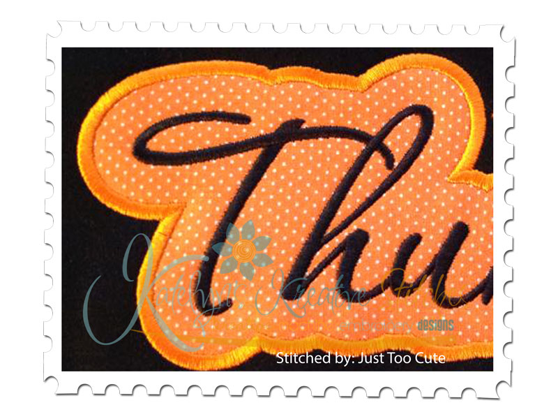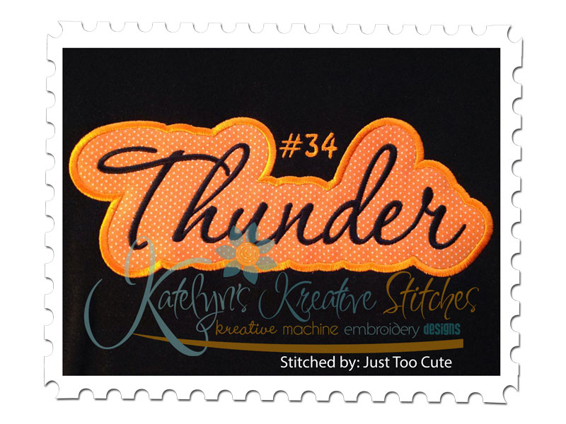 Thunder Applique Script stitched by Just Too Cute Embroidery