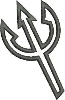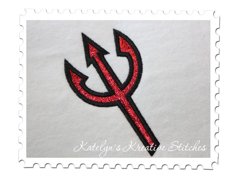 Our Trident Applique, aka The Devil's Pitchfork, is a perfect fit for our Devil's or Daredevil's Mascots.  This design will fit the 4x4 and 5x7 hoops.  It will be done with a satin stitch and a zigzag stitch.