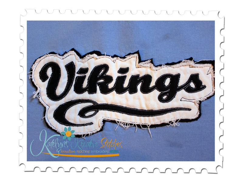 Our Vikings Distressed Applique is a stylish and quick stitch that the Teens and Adults will both love. Perfect for Tees, Sweatshirts and Hoodies. The letters are done in a distressed technique. The stitch out is a little different than most appliques so please make sure you download the instructions as well. Once you have done the first one the rest are super simple. It will fit the 5x7, 6x10 and 11x7 hoop sizes.