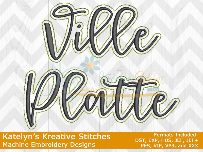Our Ville Platte Script will come in 5 sizes for a quick and simple stitch out. They will fit the 4x4, 5x7, 6x10, 8x12 and 8x14 hoop sizes. These will be great for tees, sweatshirts, hoodies, blankets, bags and much more. The 4x4 size will be perfect for polo's. Please refer to your .pdf files for design layout and color chart. Each step is labeled on the .pdf files.