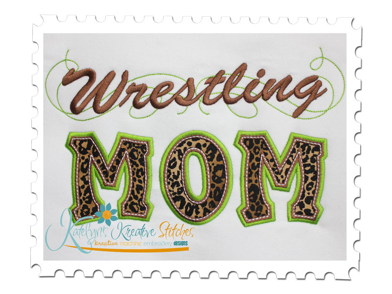 Our Wrestling Mom Applique is a great way to show how proud you are to be a part of the team.  This design gives a new twist on the word MOM.  It can be stitched on Tank Tops, Tees, Sweatshirts, Jackets, Bags, Blankets and more.  The words "Wrestling" are splashed across the top of the decrotive swirls.  Also the font is done in a double satin stitch making it possible to do them in two seperate colors.  This font can also be stitch in any combination.  This design will fit the hoop sizes 5x7, 6x10 and 11x7.