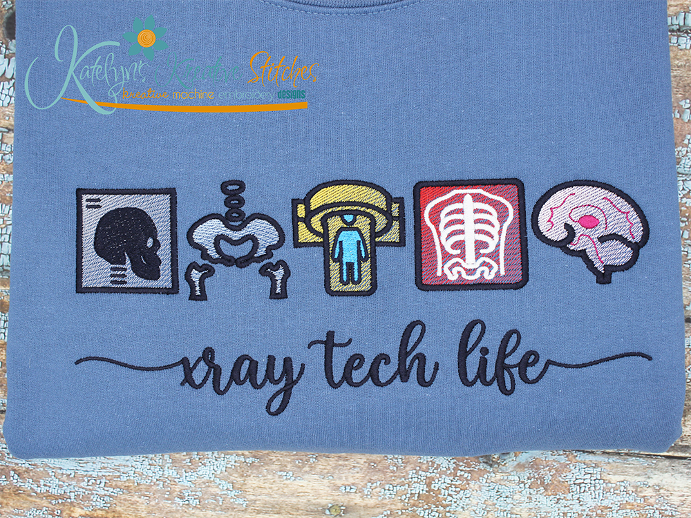 XRay Tech Life Icon Embroidery - Filled and Outline Versions