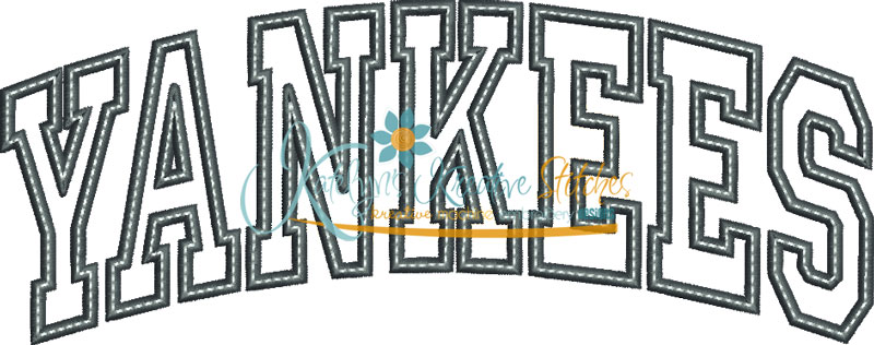 Our Yankees arched embroidery design will come in 5 sizes. The 5x7, 6x10, 8x12 and 8x14 will be applique. The smaller 4x4 size will be in a satin stitch. These will be great for school sweatshirts and tees. The 4x4 size will be perfect for polo's too.